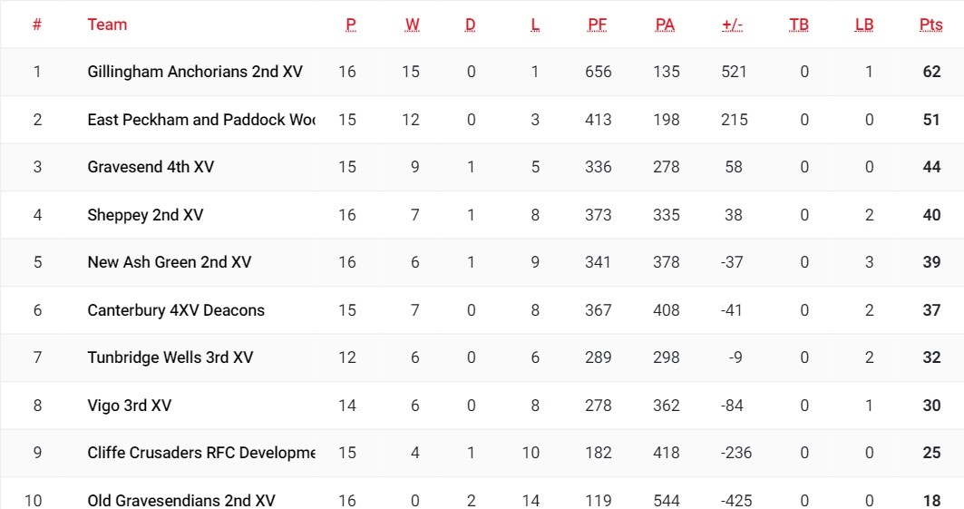 The final table for the second XV has not yet been announced, but at the close of play the team were sitting forrth in the table.
